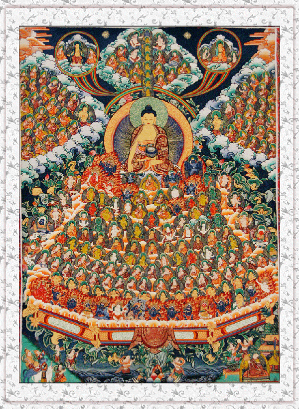 唐卡(Thang-ga)也叫唐嘎,唐喀,系藏文音译,指用彩缎装裱后悬挂供奉的宗教卷轴画。唐卡是藏族文化中一种独具特色的绘画艺术形式,题材内容涉及藏族的历史、政治、文化和社会生活等诸多领域,堪称藏民族的百科全书。传世唐卡大都是藏传佛教和苯教作品。它类似于汉族地区的卷轴画,多画于布或纸上,然后用绸缎缝制装裱,上端横轴有细绳便于悬挂,下轴两端饰有精美轴头。画面上覆有薄丝绢及双条彩带。涉及佛教的唐卡画成装裱后,一般还要请喇嘛念经加持,并在背面盖上喇嘛的金汁或朱砂手印。也有极少量的缂丝、刺绣和珍珠唐卡。唐卡的绘制极为复杂,用料极其考究,颜料全为天然矿植物原料,色泽艳丽,经久不退,具有浓郁的雪域风格。唐卡在内容上多为西藏宗教、历史、文化艺术和科学技术等,凝聚着藏族人民的信仰和智慧,记载着西藏的文明、历史和发展,寄托着藏族人民对佛祖的无可比拟的情感和对雪域家乡的无限热爱。
