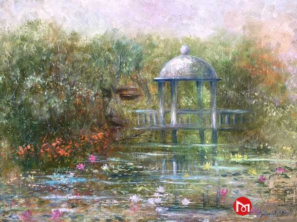 第二个就是画面本身,虽然陈先生是从建筑,早年学建筑,但是从简历上看,他到香港,到美国以前,他从小也是,十一、二岁就开始练传统的笔墨,水墨画和传统绘 画,他对艺术的思考,艺术的感觉,应该说是伴随着一生的。在这个画面中,当然他在这些年绘画的时候,他如何来绘画,我看从画面上来讲,陈先生为了追求一种 永恒,同时他又在美国吸收了大量的西方的绘画,也都看到了,中国传统的东西,他从小也有。那么如何来表达一些自己的一种人文情怀?我们看到陈先生他选择这 样一种反复叠加的,各种形象资源,各种视觉经验,各种反复叠加的,有中国传统的一些绘画元素,也有西方的人物,这些模特,一些人物,这些若隐若现的人物, 其实大部分都是洋人的面孔,反映了他生活的背景,同时也有他自己儿时的传统的,我们中华文化传统的文脉的这样的一些记忆。那么这些东西,另外也有他要表达 诉求的东西,是,他是悲怜的,应该也不是说,我觉得他其实也不是悲观,他是很悲怜地关注着这个世界。我觉得陈先生的内心还是希望留给世界更加美好的东西, 所以在这个音乐中间,我们刚才看到他底下展厅里面配的音乐里面,这是一种精神剔透,甚至于带着令人神往和遐想的这样一种音乐。包括他布置的那个黑盒子,黑 盒子那个房子的满天星斗,里面的一些未知数,一些神秘的这种东西,未知的这种东西。包括他的画面中间大量的小飞鹤、鱼,海洋里面的鱼、藻,各种变体的复合 的意象性的东西,我觉得他还是想去追求一种平静,一种安宁和一种令人神往的一种东西。换句话说,希望是一种永恒的,尽管眼前的世界,尽管陈先生自己的体会 是人和人、民族和民族、国家和国家之间,从古到今的互相的杀戮和纷争,但是他还是表达了,画面中体现出他还是希望追求一种向往的、神往的东西。这个是我对 陈先生的绘画解读的一种基调。