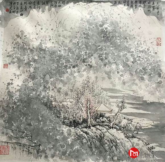 陈廷友作品他自觉地学习、继承了新安画派的传统,师古人,师造化。不仅如此,近观陈廷友画面可以看出其在诗、书、画、印上都做很好,艺术修养很高,他将成为在画坛上占有一席之地的杰出画家。