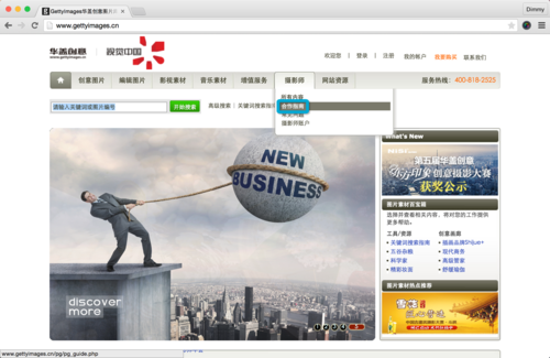 在华盖创意网站www.gettyimages.cn的网站首页导航栏中找到“摄影师”,下拉菜单中有一个“合作指南”,点击它就可以打开在线申请页面。