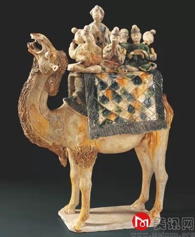 三彩骆驼载乐俑